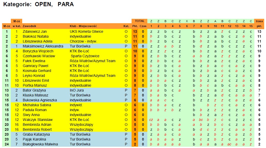 Poniżej wyniki zawodów oraz mapa z prawidłowymi odpowiedziami "wzorcówka":