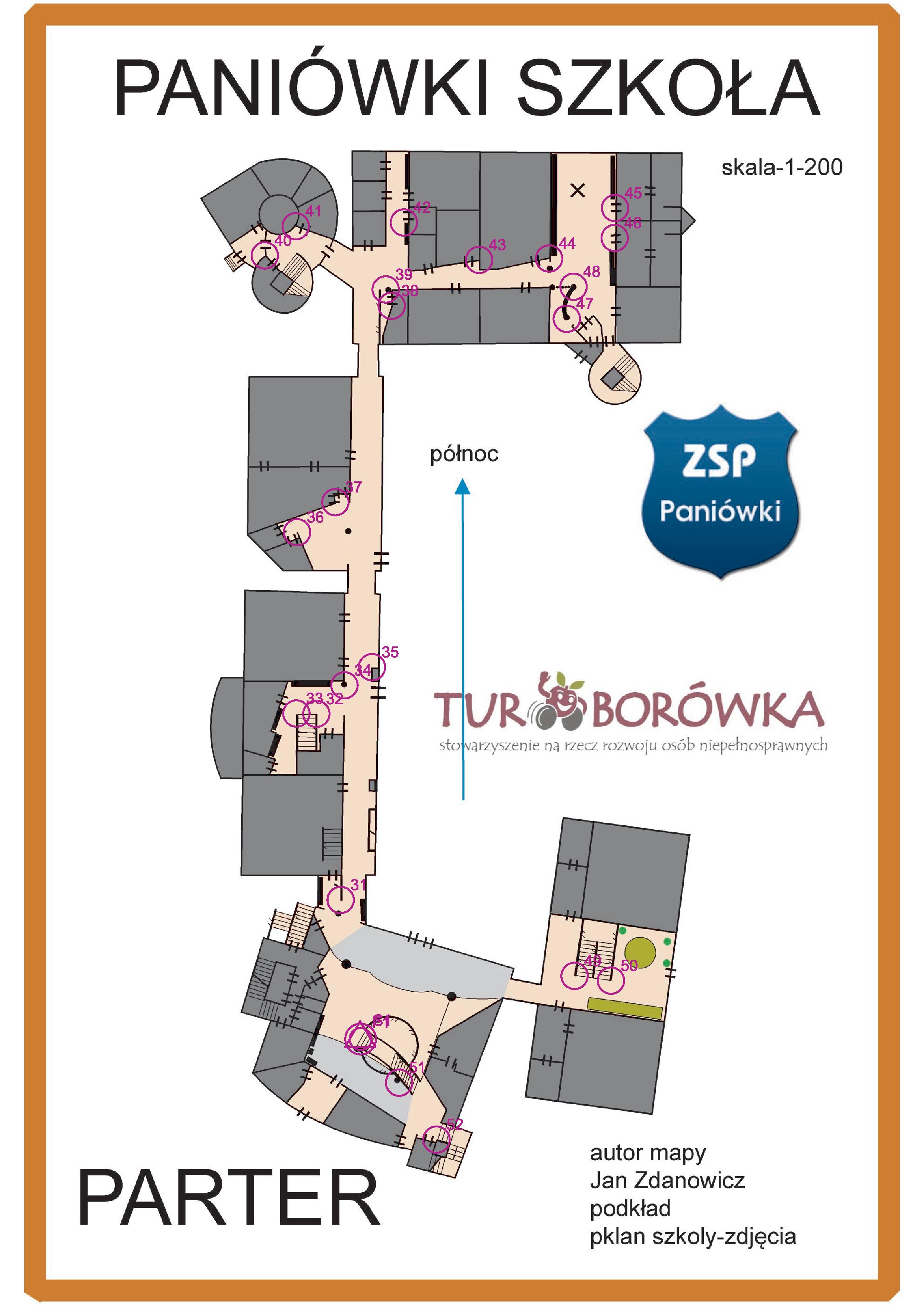 Tym razem, na nasz poniedziałkowy trening, udaliśmy się do pobliskiej Szkoły Podstawowej w Paniówkach. Nowoczesny budynek Zespołu Szkolno-Przedszkolnego w Paniówkach, charakteryzuje się tym, że zarówno wewnątrz jaki na zewnątrz pełno jest różnego rodzaju zakamarków, załomków i skomplikowanych detali architektonicznych. Teren wymarzony do zaawansowanych treningów z Orientacji Precyzyjnej. Na razie pogoda nie pozwala na organizację treningów na zewnątrz, więc tym razem skupiliśmy się na eksploracji zawiłości wewnątrz budynku.